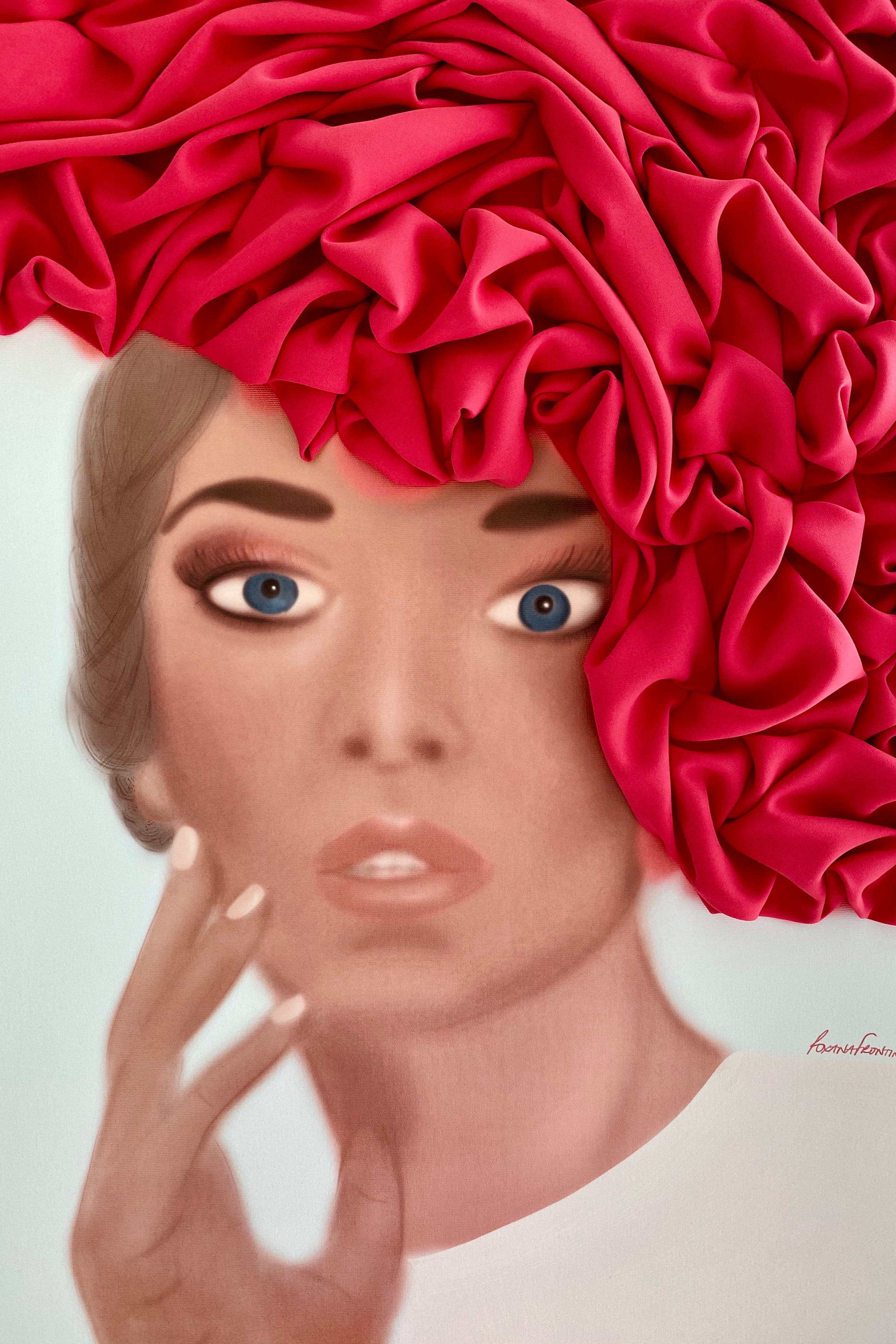 Archival pigment print on canvas with sculptural silk elements, framed